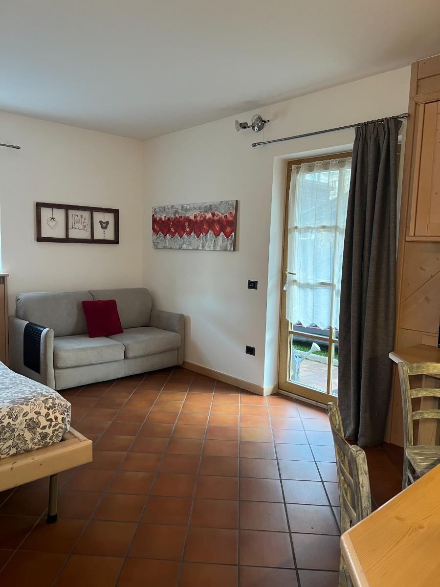 Ampia camera a piano terra con bagno, letto matrimoniale e divano letto alla francese, ideale per una coppia e due ragazzi o tre adulti, culla a disposizione e gratuita per bimbi fino a 24 mesi, giardino attrezzato con sdraio, divano e tavolini, terrazza privata, parcheggio privato. In camera a disposizione forno microonde, piccolo frigorifero. Ampia disponibilità di libri per il vostro relax, convenzione con Dolomiti Trentino Card per agevolazioni Altopiano e gratuità per trasporto Trentino.